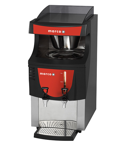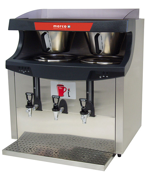 Delivers coffee directly into portable urn. Operator sets recipes and batch volume requirements. Basket safety lock during brewing. For high volume requirements.